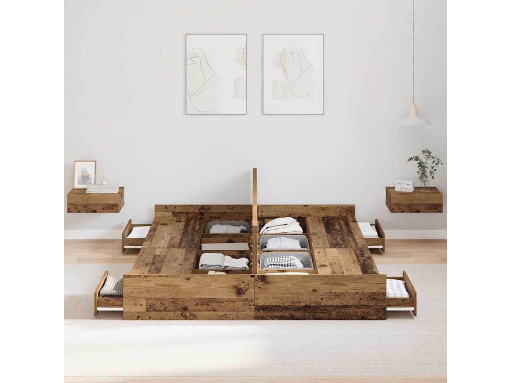 - Komplexní úložná řešení: Postel má spoustu integrovaných zásuvek, což maximalizuje místo v ložnici. Tyto úložné boxy z inženýrského dřeva vám umožní pohodlně skladovat věci jako ložní prádlo nebo oblečení a udržet místnost v pořádku.
