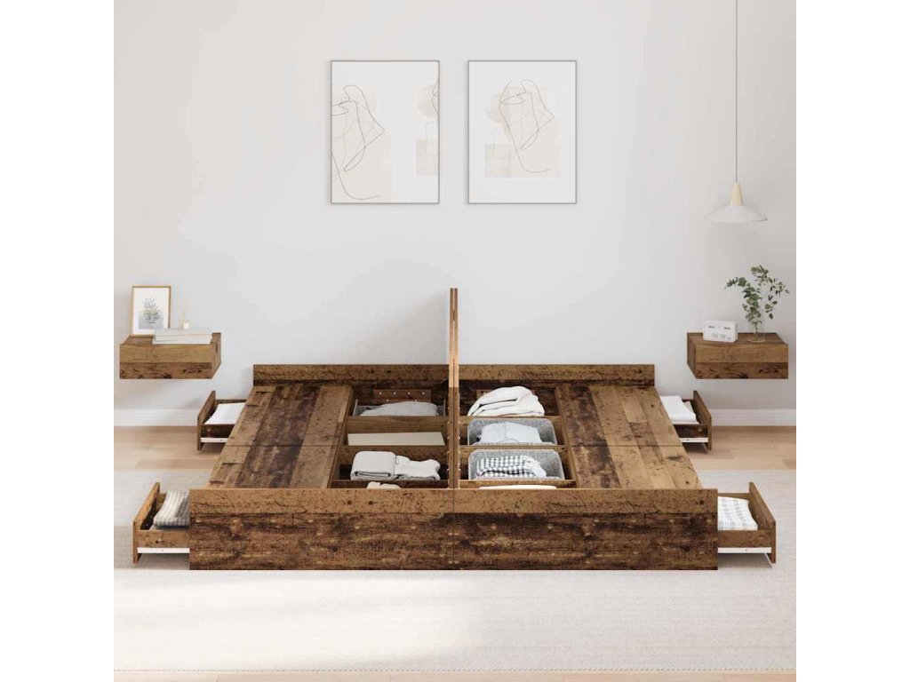 - Komplexní úložná řešení: Postel má spoustu integrovaných zásuvek, což maximalizuje místo v ložnici. Tyto úložné boxy z inženýrského dřeva vám umožní pohodlně skladovat věci jako ložní prádlo nebo oblečení a udržet místnost v pořádku.