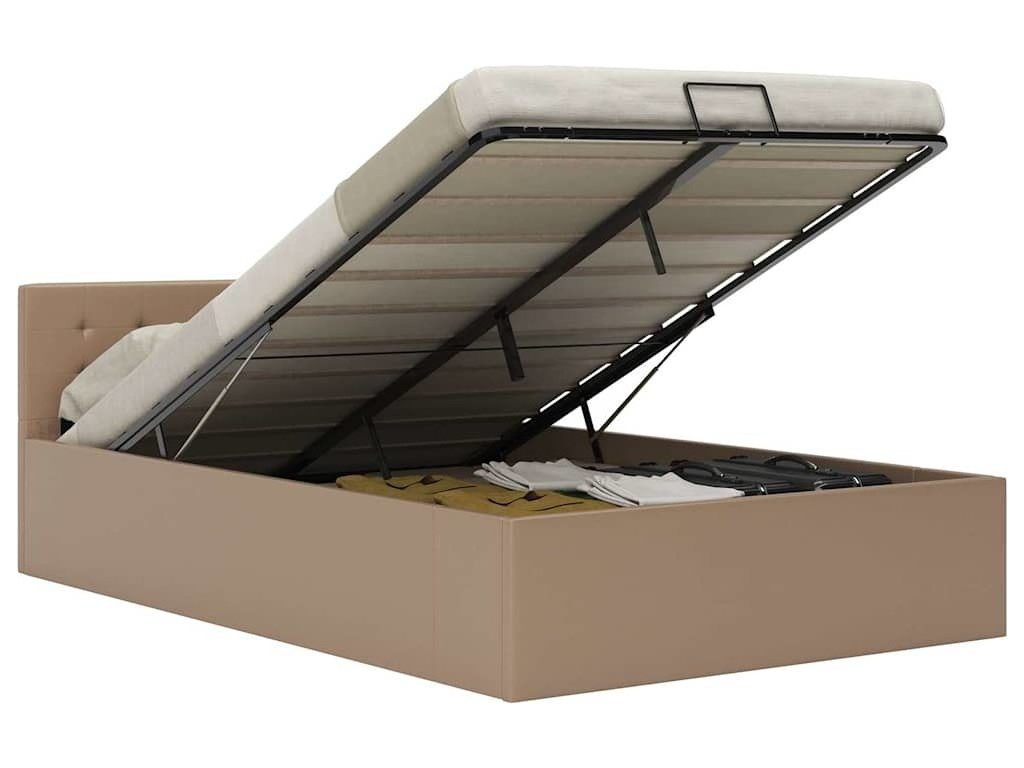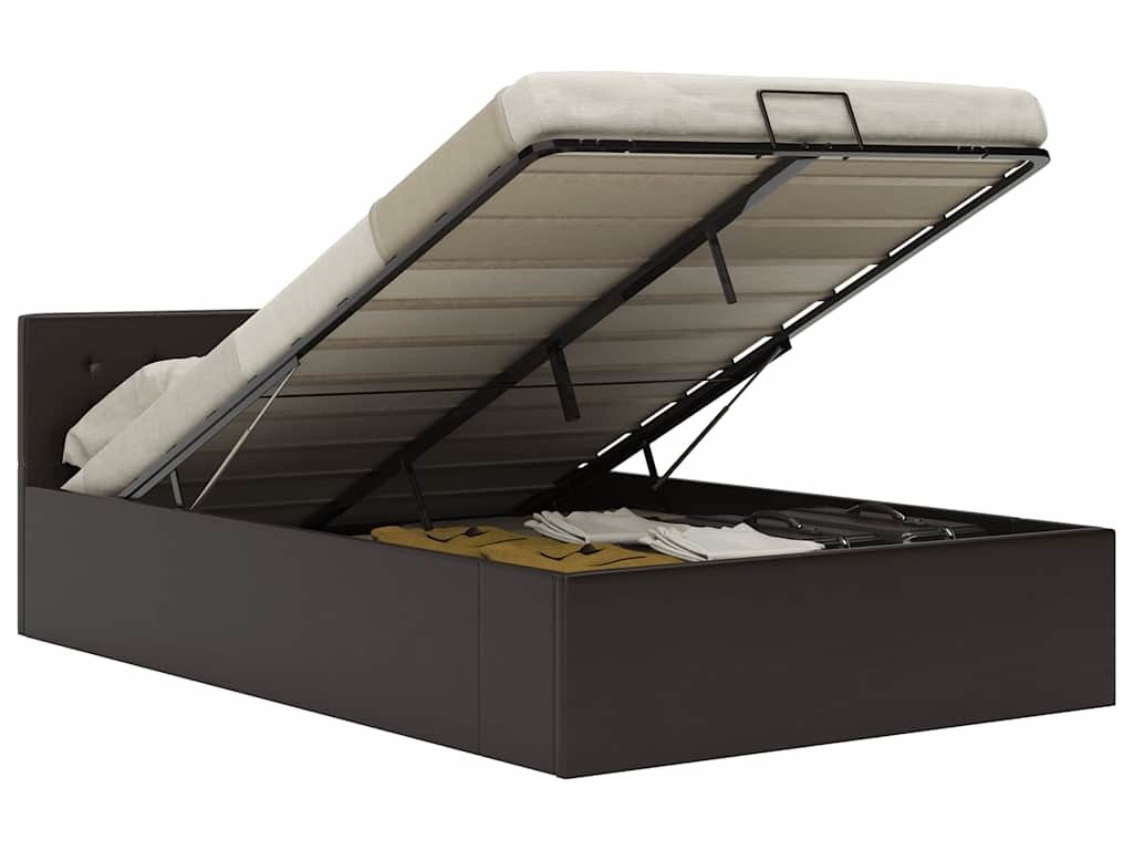 Ocelový rám s práškovým nástřikem a překližkové lamely dodávají posteli s úložným prostorem na robustnosti a odolnosti. Čalounění z odolné kůže přímo vybízí k ulehnutí a snadno se udržuje. Sestavení produktu je jednoduché. Rám postele je vhodný pro matrace o rozměrech 120 x 200 cm.