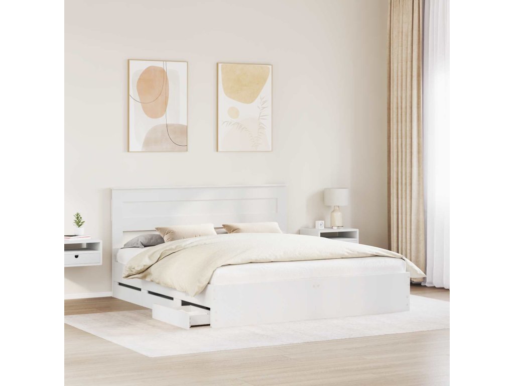 Rám postele se zásuvkou Bílá 200 x 200 cm Inženýrské dřevo [3409823]