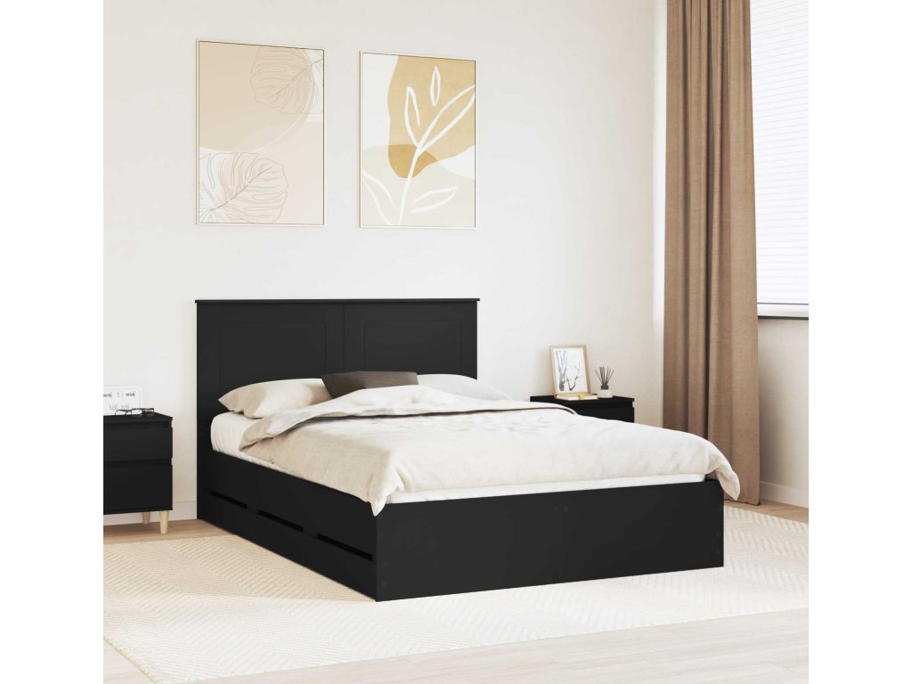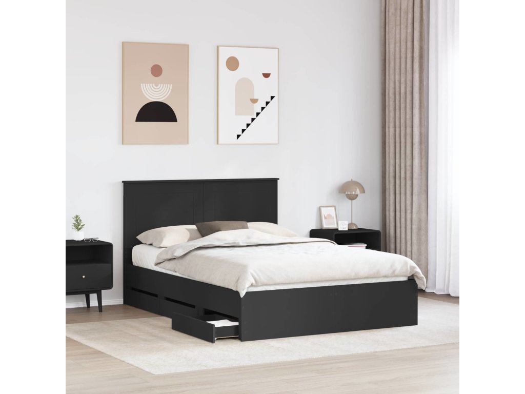 Rám postele se zásuvkou Černá 140 x 190 cm Inženýrské dřevo [3409455]
