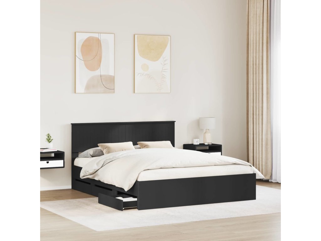 Rám postele se zásuvkou Černá 160 x 200 cm Inženýrské dřevo [3410687]