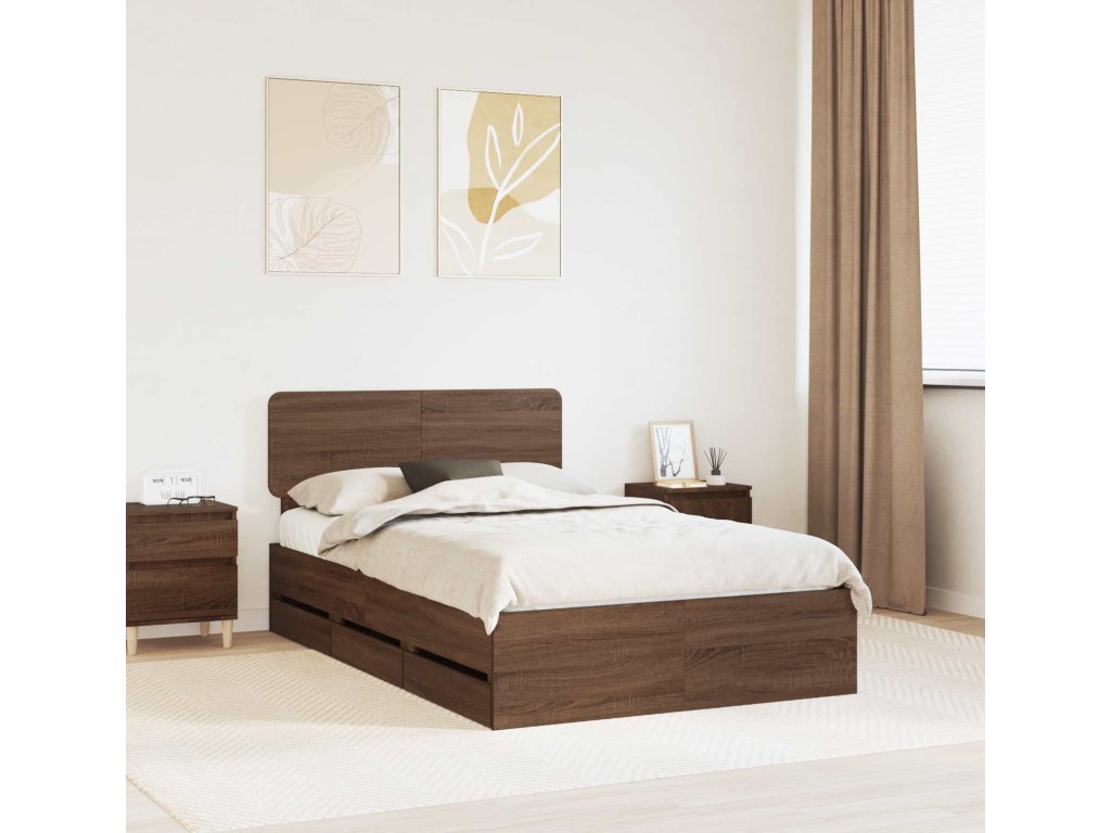 Rám postele se zásuvkou Hnědý dub 120 x 200 cm Inženýrské dřevo [3412212]