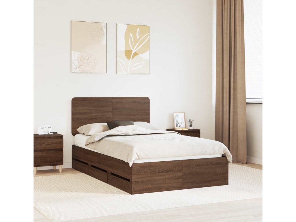 Rám postele se zásuvkou Hnědý dub 120 x 200 cm Inženýrské dřevo [3412622]