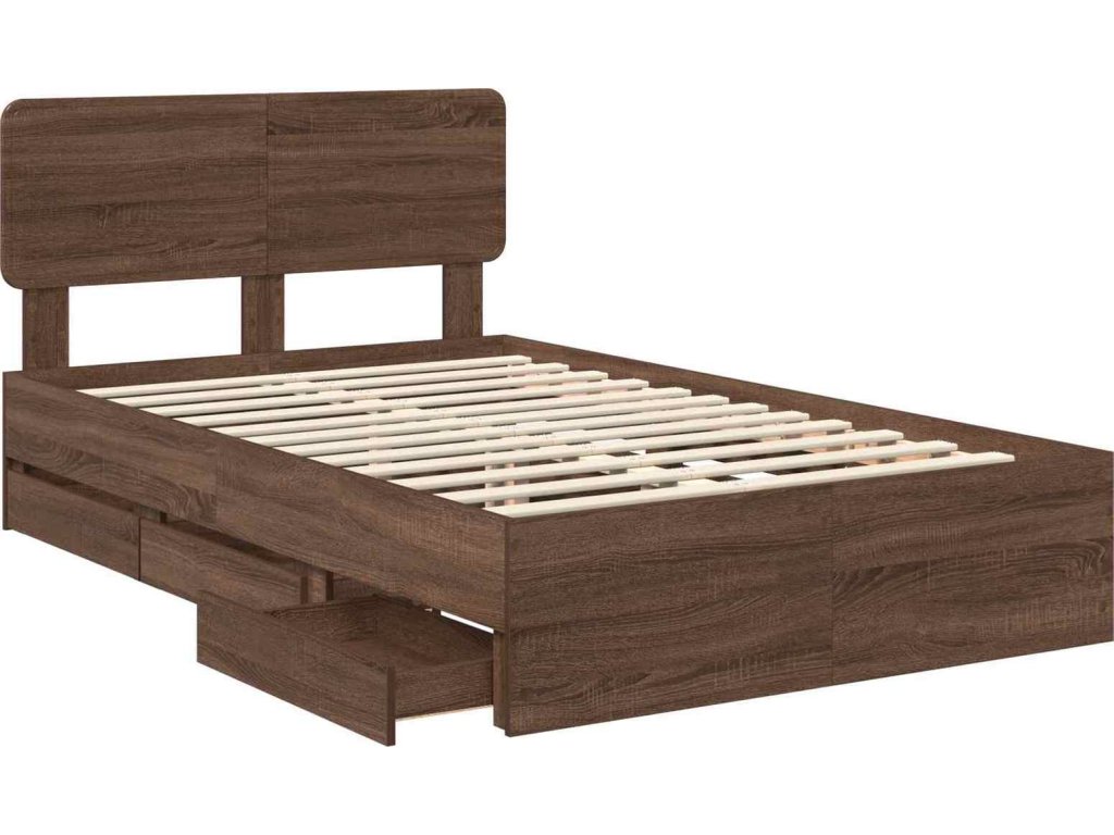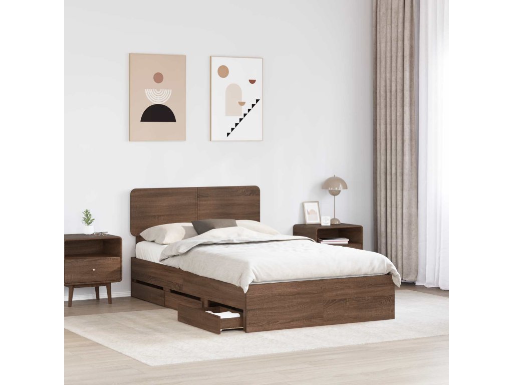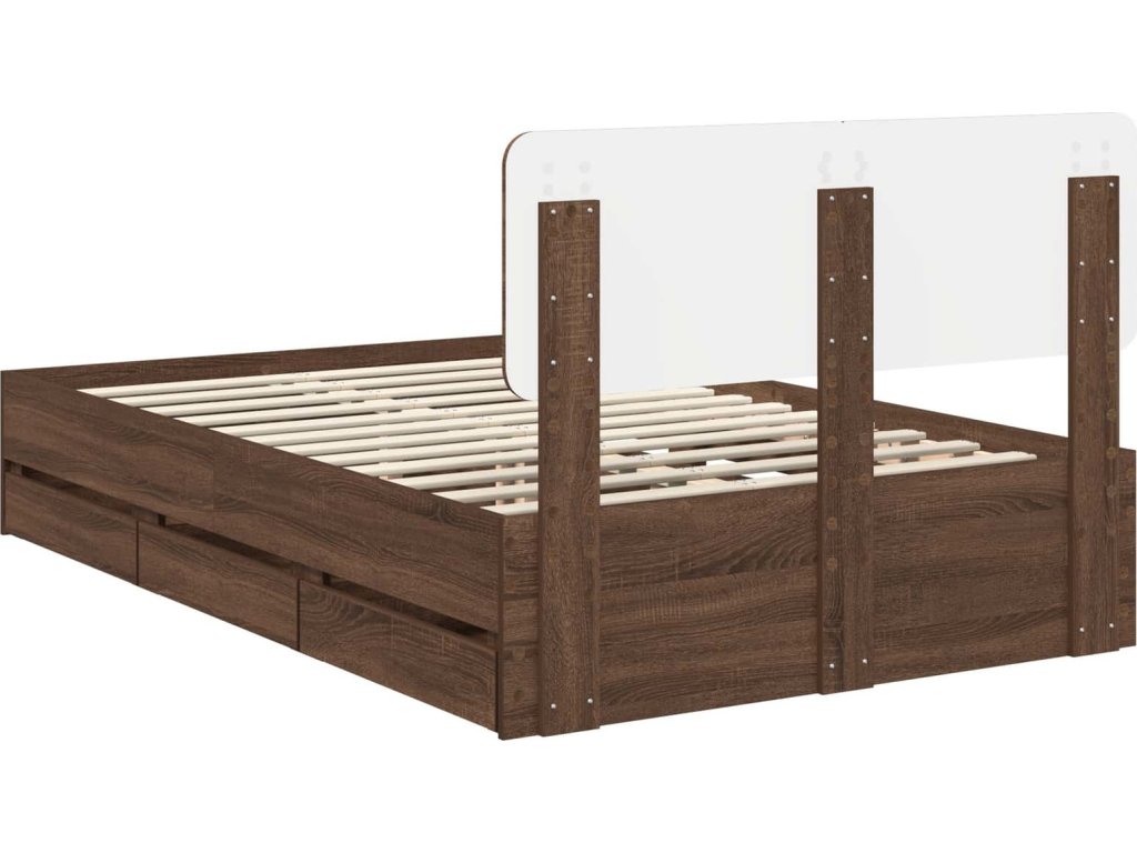 Rám postele se zásuvkou Hnědý dub 135 x 190 cm Inženýrské dřevo [3412198]