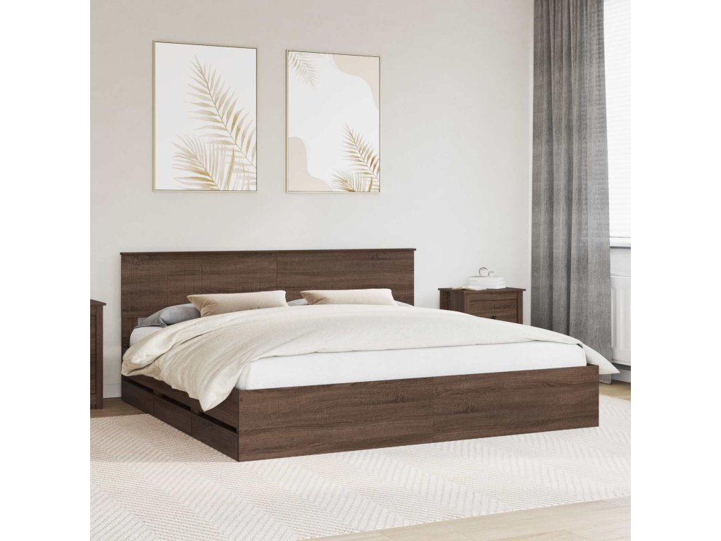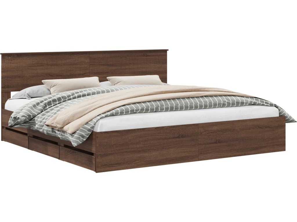 Rám postele se zásuvkou Hnědý dub 200 x 200 cm Inženýrské dřevo [3410678]