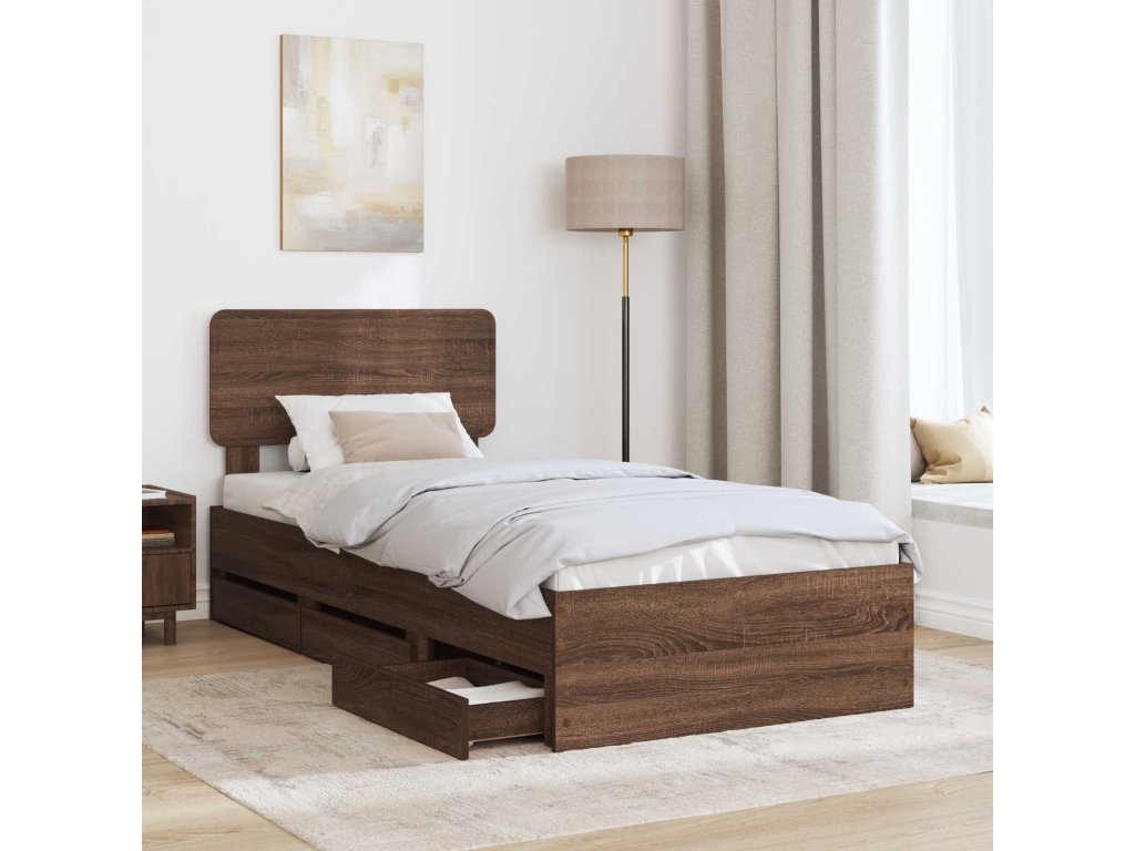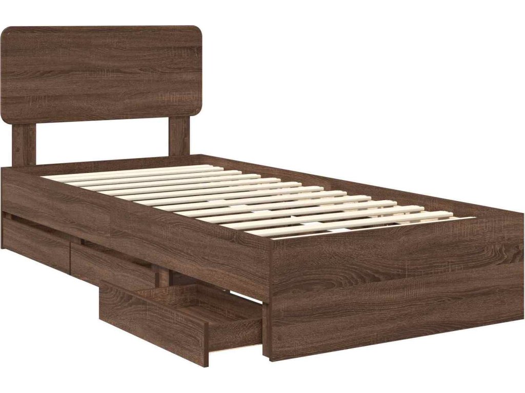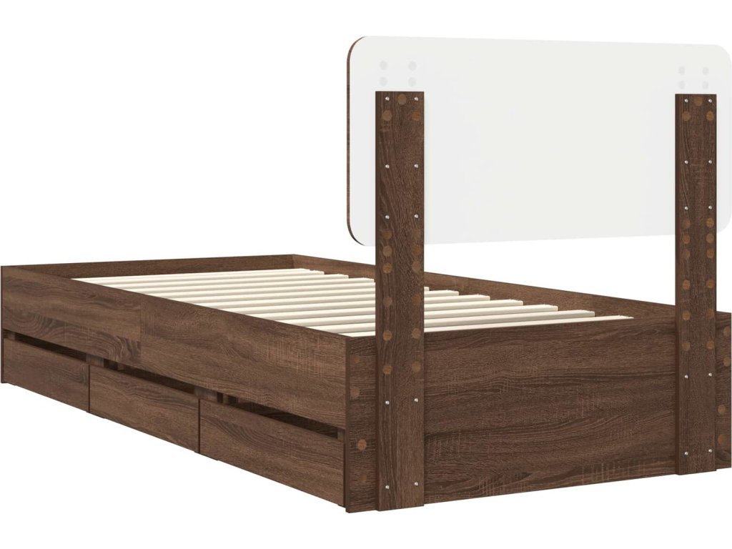 Rám postele se zásuvkou Hnědý dub 90 x 190 cm Inženýrské dřevo [3412226]