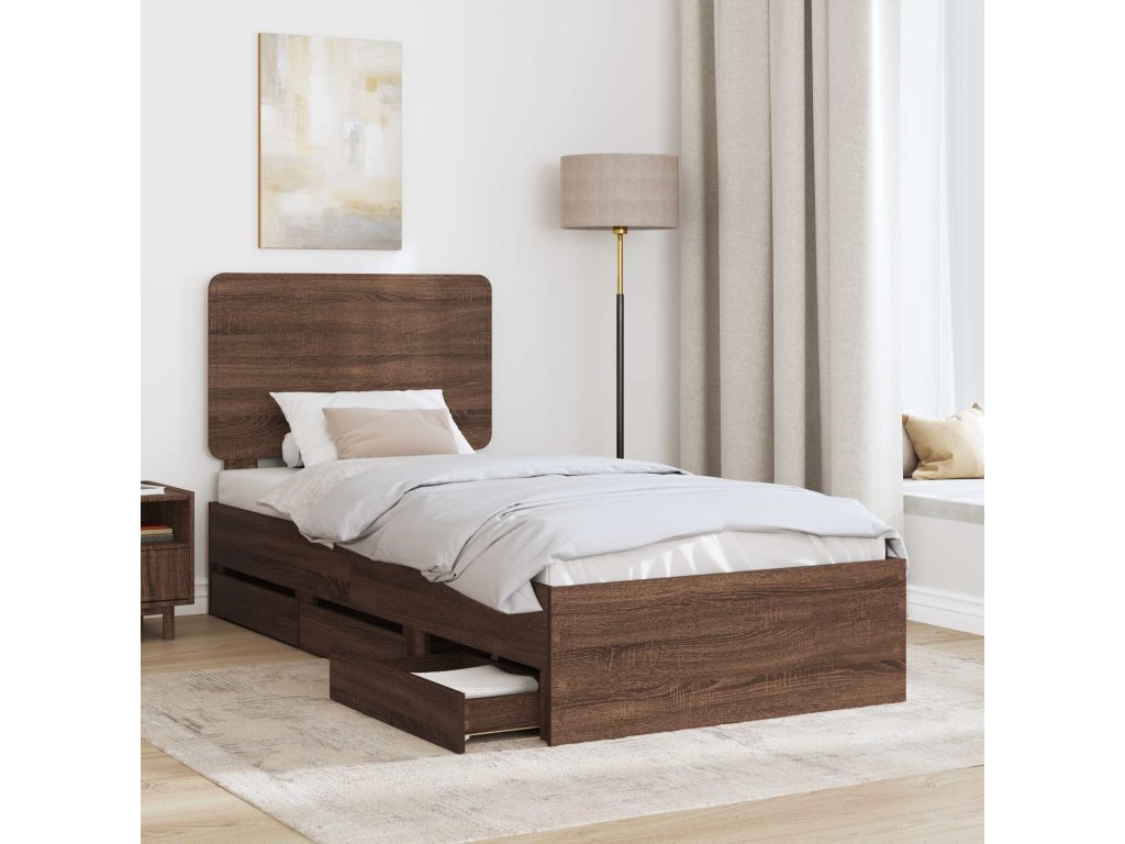 Rám postele se zásuvkou Hnědý dub 90 x 200 cm Inženýrské dřevo [3412643]