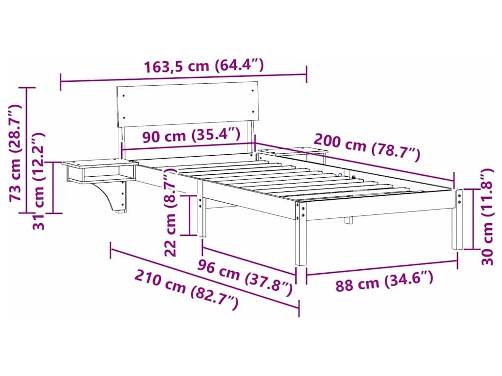 - Velikost matrace: Jednolůžko (90 cm x 200 cm nebo 35" x 79")
