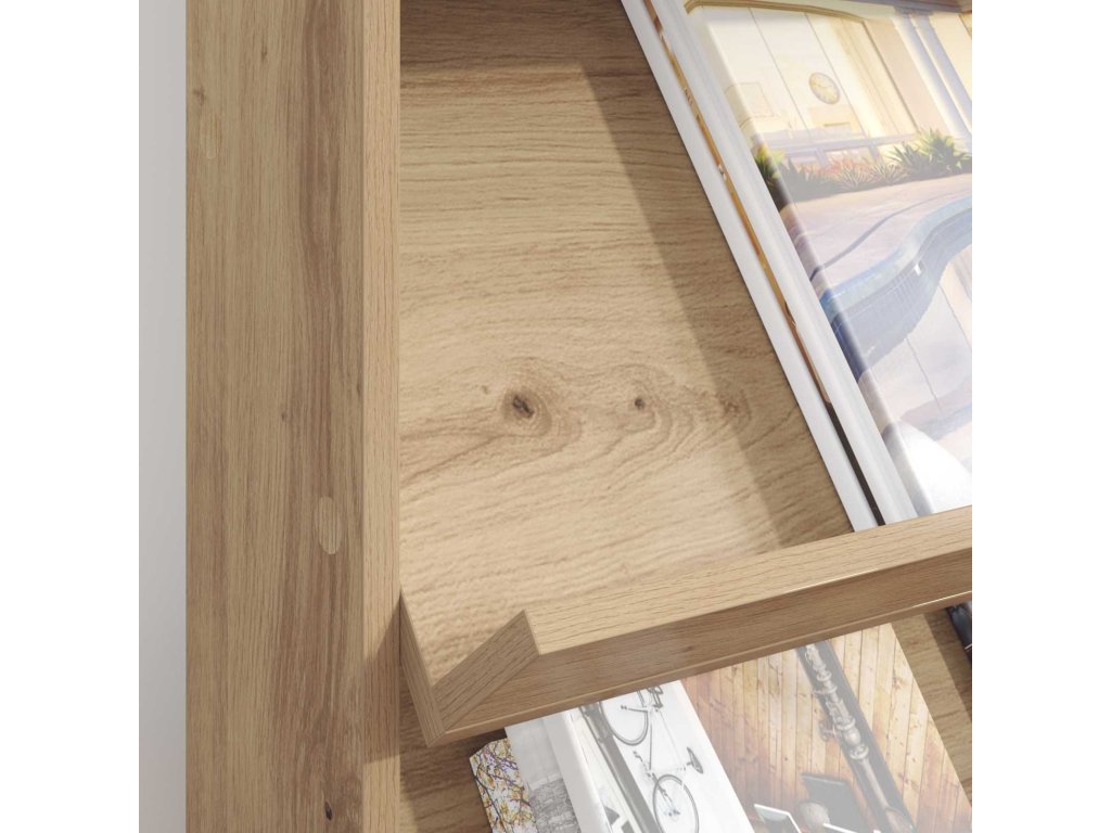 - Zahrnuté komponenty: Volně stojící konstrukce má nezávislé police, které ti pomohou uspořádat a vystavit oblíbené časopisy a dokumenty. Bez problémů ho postavíš v obýváku, kanceláři či ložnici – funguje jako dekorace i praktický kus. Můžeš ho kreativně umístit, třeba u zdi nebo jako dělítko v širších prostorech.