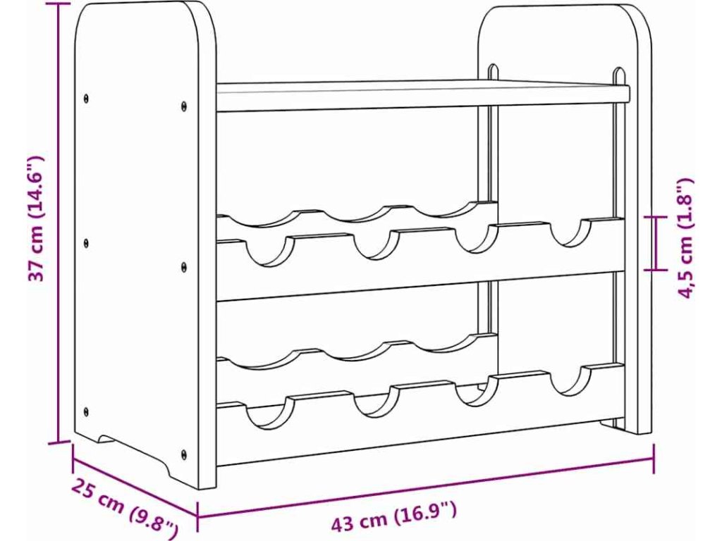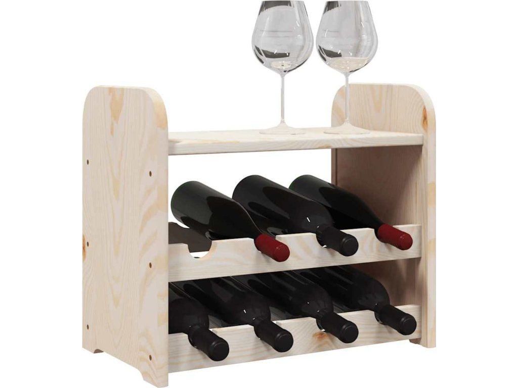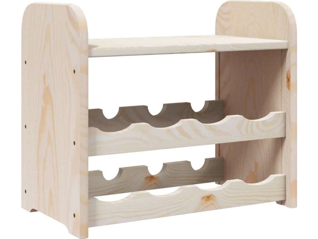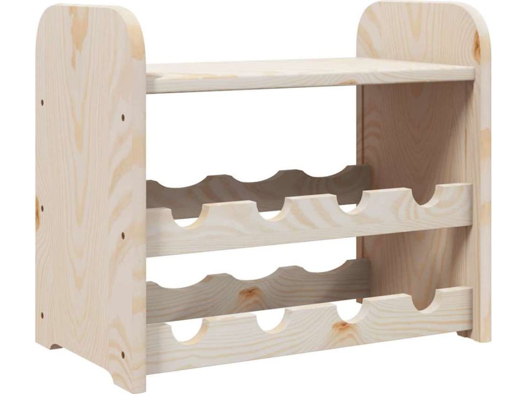 - Masivní borové dřevo: Tento stojan na víno je vyrobený z masivní borovice. Masivní borové dřevo je krásný přírodní materiál. Borové dřevo má rovnou kresbu a obsahuje suky, které materiálu dodávají jeho charakteristický, rustikální vzhled.