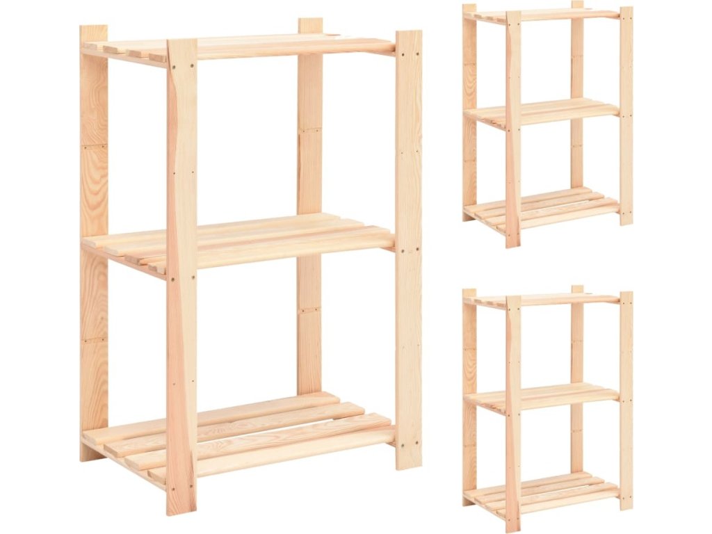 Regály 3 police 3 ks 60 x 38 x 90 cm masivní borovice 150 kg [3051122]