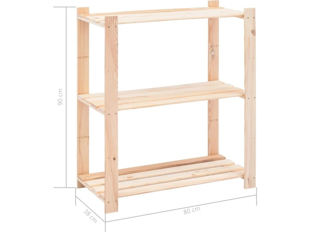 Regály 3 police 3 ks 80 x 38 x 90 cm masivní borovice 150 kg [3051118]