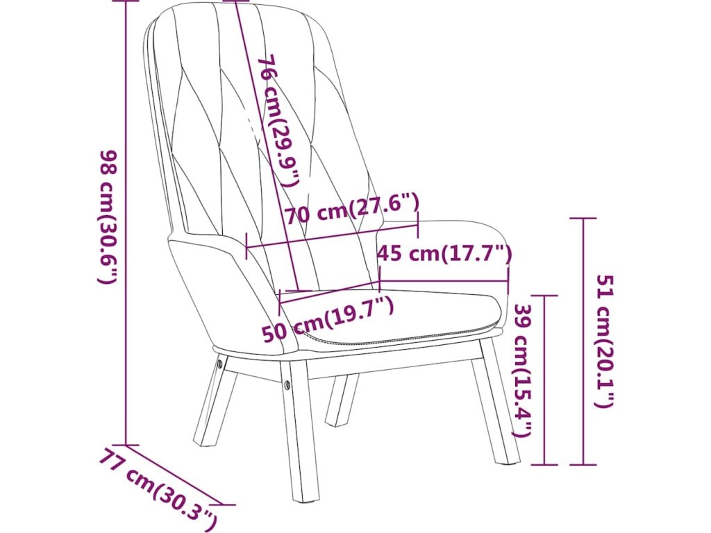 - Materiál: samet (100% polyester), kov, překližka, masivní kaučukovníkové dřevo