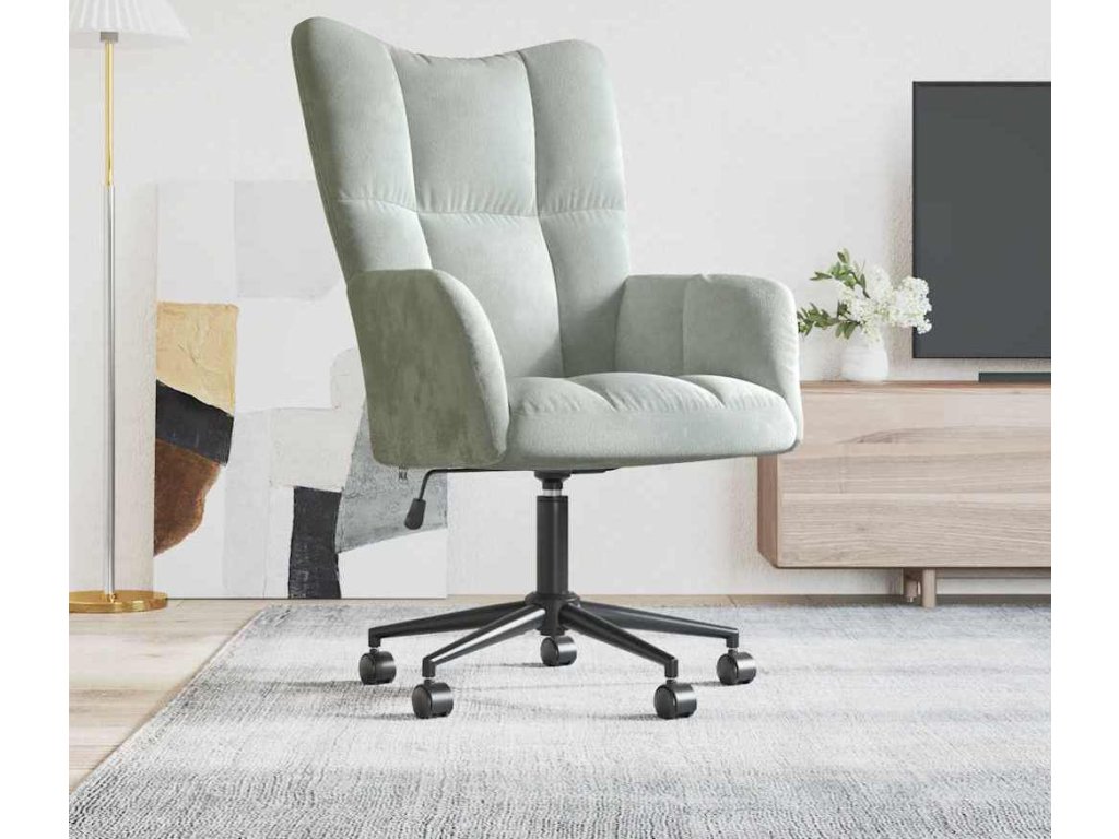 Toto prošívané kancelářské křeslo působí příjemným estetickým dojmem. Navíc je hustě polstrované pěnovým molitanem a čalouněné na dotek měkkým sametem, takže vám při sezení zajistí optimální pohodlí. Křeslo do obývacího pokoje disponuje mechanismem s plynovým pístem, můžete si tedy sami nastavit jeho výšku tak, aby se vám co nejlépe sedělo. Kolečka a možnost otáčení o 360 stupňů zaručují fantastickou flexibilitu. Relaxační křeslo podepírají ocelový rám a křížové nohy, je proto stabilní a odolné.