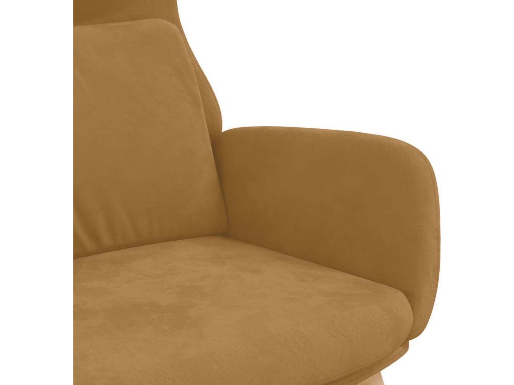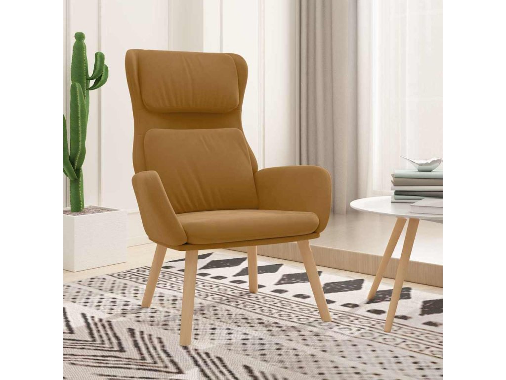 Hustě polstrované relaxační křeslo je čalouněné hebkým sametem, a tak vám při sezení nabídne maximální komfort. Podepírá ho kovový rám a nohy z masivního kaučukovníkového dřeva, křeslo je tudíž odolné a stabilní. Navíc má područky, kde si můžete pohodlně opřít lokty.