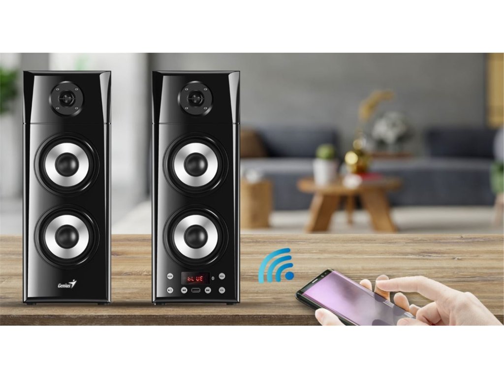 Aktivní Bluetooth reproduktory Genius SP-HF2800BT přinášejí skvělý 3pásmový zvuk v konfiguraci 2.0 s celkovým výkonem 60 W. Svá zařízení k němu připojíte buď pomocí 3,5mm audio jacku, nebo pomocí Bluetooth 5.0. K dispozici máte také USB port, do kterého můžete připojit svůj flash disk. Reproduktory ovládáte buď pomocí LCD displeje a tlačítek, nebo pomocí dálkového ovladače. Díky tomu je poslech hudby pohodlnější než kdy dřív.