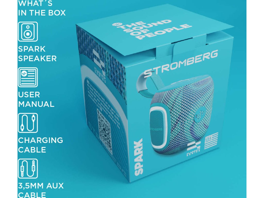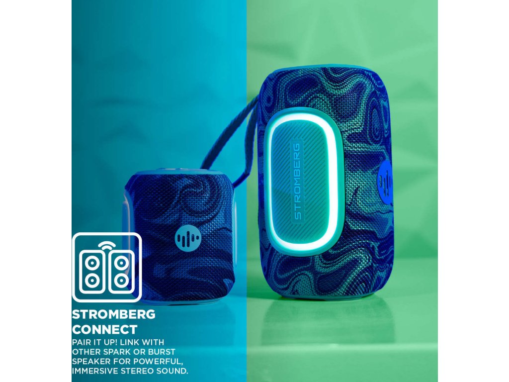 S hmotností pouze 440 g a rozměry 85 × 105 × 85 mm se Stromberg SPARK vejde do každího batohu. Jeho robustní tělo s IPX5 odolností z něj dělá spolehlivého společníka pro venkovní dobrodružství. LED podsvícení zajistí vizuální efekt a funkce True Wireless Stereo umožní propojení s dalším reproduktorem pro větší zvukový prostor.