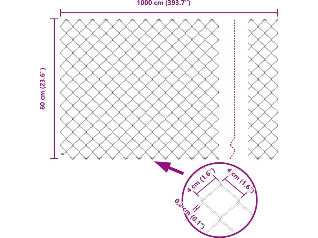 Tento plot z řetězových odkazů se hodí na vymezení pozemku a současně vypadá stylově. Je ideální do zahrad a na terasy, má minimalistický styl, který funguje jak v obytných, tak v komerčních prostorech. Jeho kovová konstrukce a design zajišťují spolehlivost pro moderní venkovní prostory. Jako trvanlivý a pěkně vypadající prvek chrání váš prostor, definuje ho a přináší estetický zážitek, který se výborně hodí k přírodě.