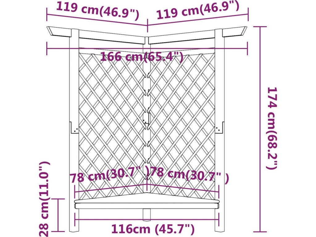 Tato dřevěná rohová pergola s lavičkou zaujme na první pohled. Je skvělou oporou pro pěstování růží a jiných popínavých rostlin.