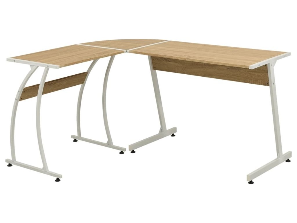 Tento rohový stůl, vyrobený z odolného kovového rámu a stolní desky z vysoce kvalitního kompozitního dřeva, je pevný, robustní a stabilní. Velká stolní deska ve tvaru písmene L je ideální pro práci nebo studium. Poskytuje dostatek místa pro umístění počítače, notebooku, knih, složek, dokumentů nebo rámečků, ozdobných předmětů, květináčů apod.