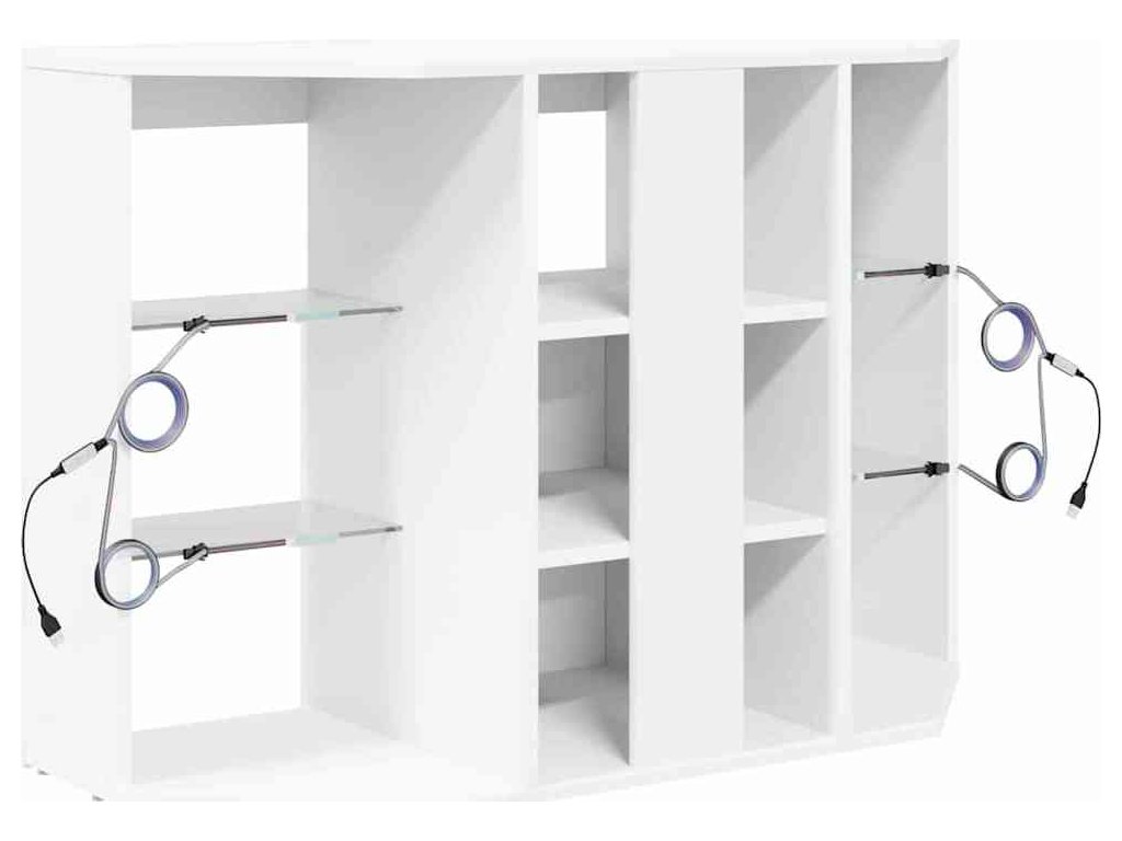 Tento moderní rohový televizní stolek s LED světly je skvělý kousek pro současné byty. Jeho elegantní vzhled a úspora místa ho činí ideální volbou do obýváku. Ať už chcete vylepšit sledování médií nebo jen přidat stylový prvek do pokoje, tento stolek splňuje všechny tyto potřeby s čistými liniemi a jednoduchými detaily, čímž obohacuje váš prostor o eleganci.
