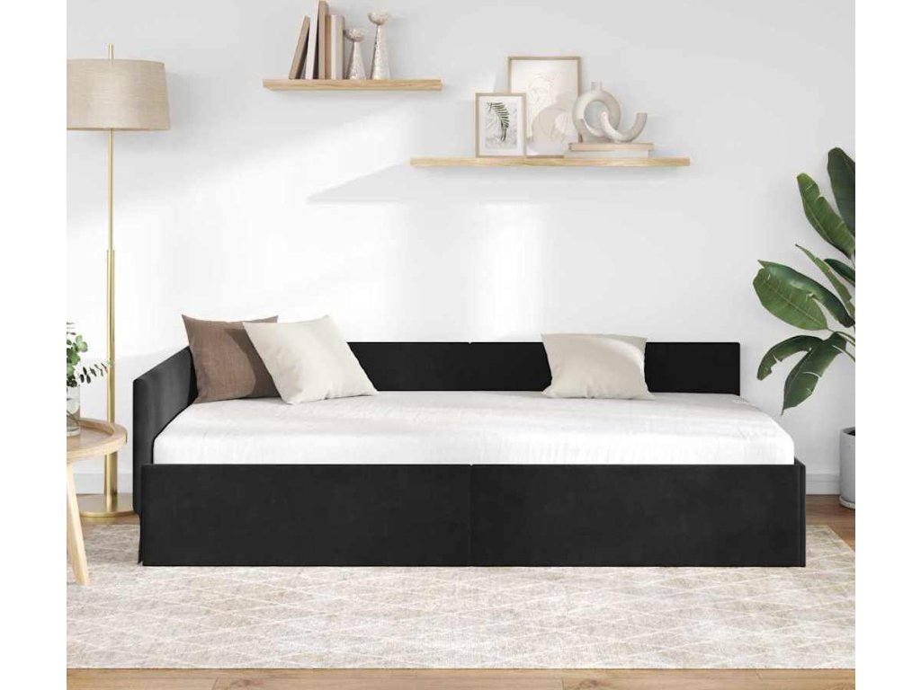 Rohový rám postele Černá 80 cm x 200 cm Polyester a překližka [42016066]