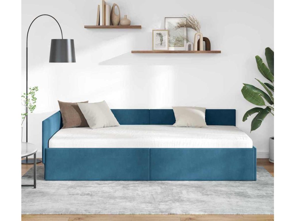 Rohový rám postele Modrá 90 cm x 200 cm Polyester a překližka [42016080]