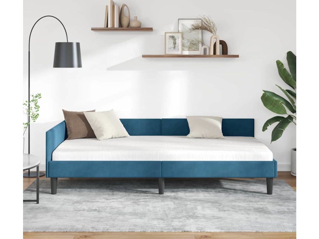 Rohový rám postele s čelo Modrá 90 cm x 200 cm SametaPlywood [42016153]