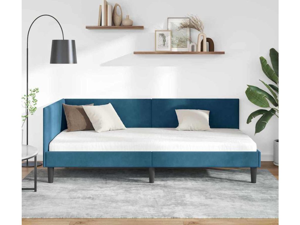 Rohový rám postele Modrá 90 cm x 200 cm Polyester a překližka [42016225]