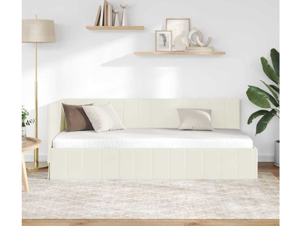 Rohový rám postele s čelo Krémová 80 cm x 200 cm samet [42016294]