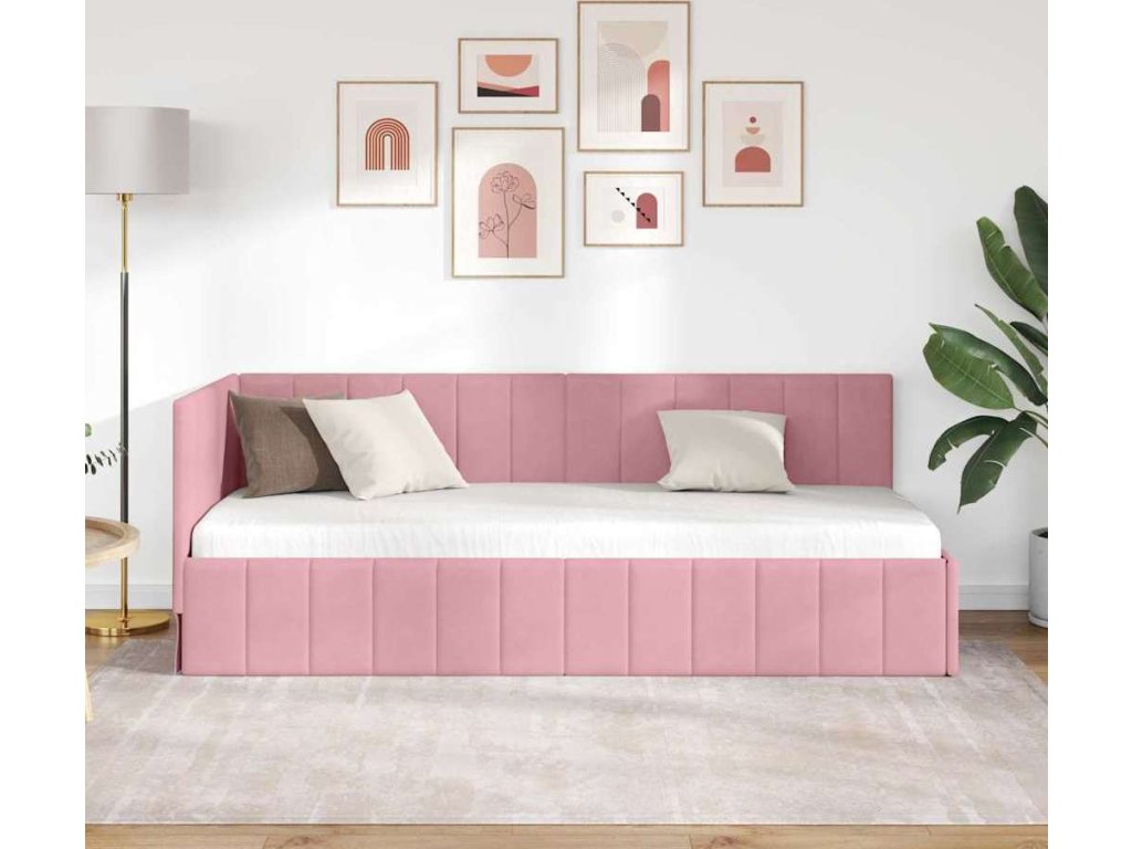 Rohový rám postele s čelo Růžová 80 cm x 200 cm samet [42016290]