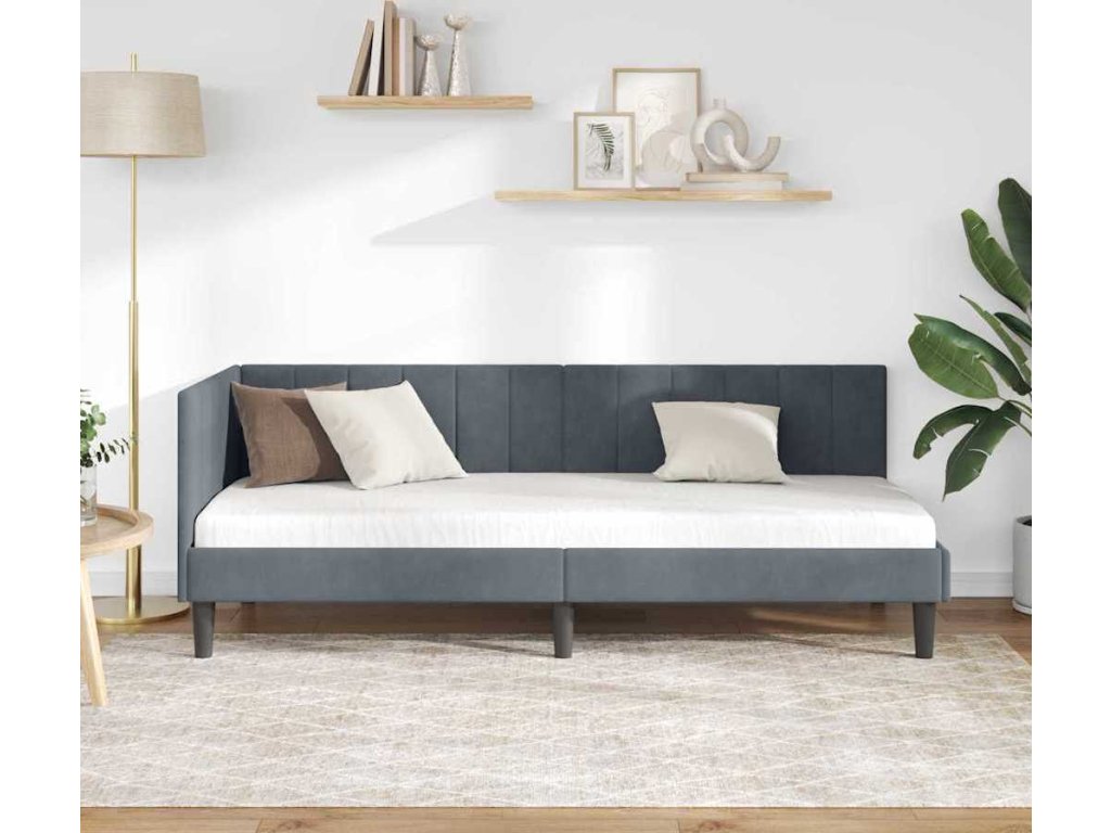 Rohový rám postele s čelo Tmavě šedá 80 cm x 200 cm samet [42016329]