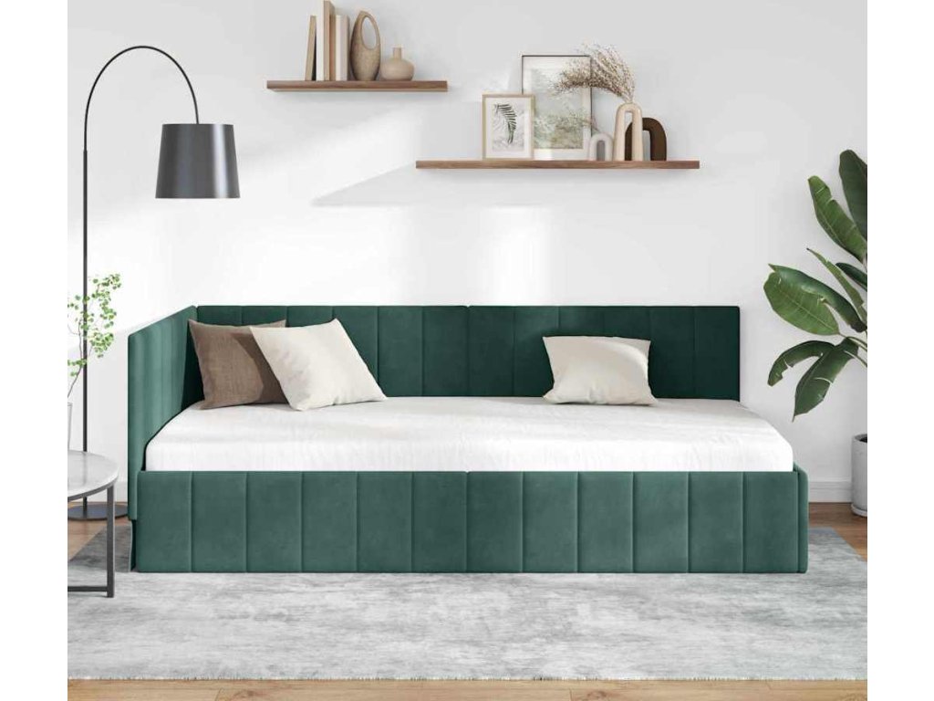 Rohový rám postele s čelo Tmavě zelená 90 cm x 200 cm samet [42016309]