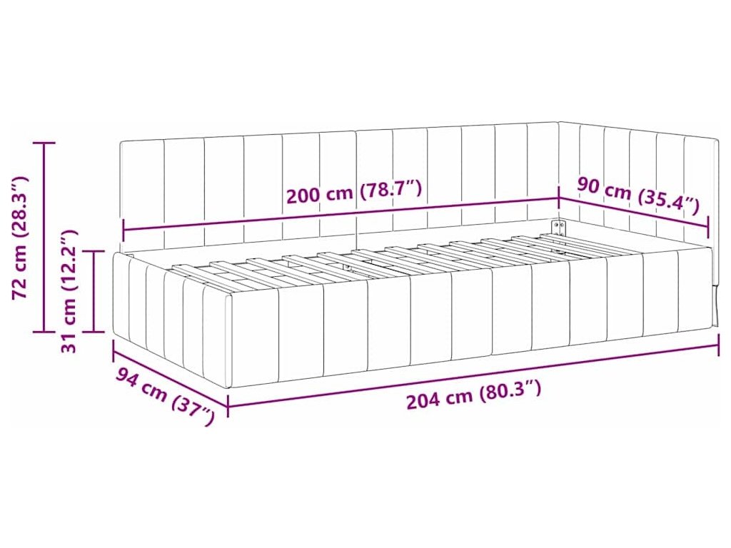 - Velikost matrace: Jednolůžko (90 cm x 200 cm nebo 35" x 79")