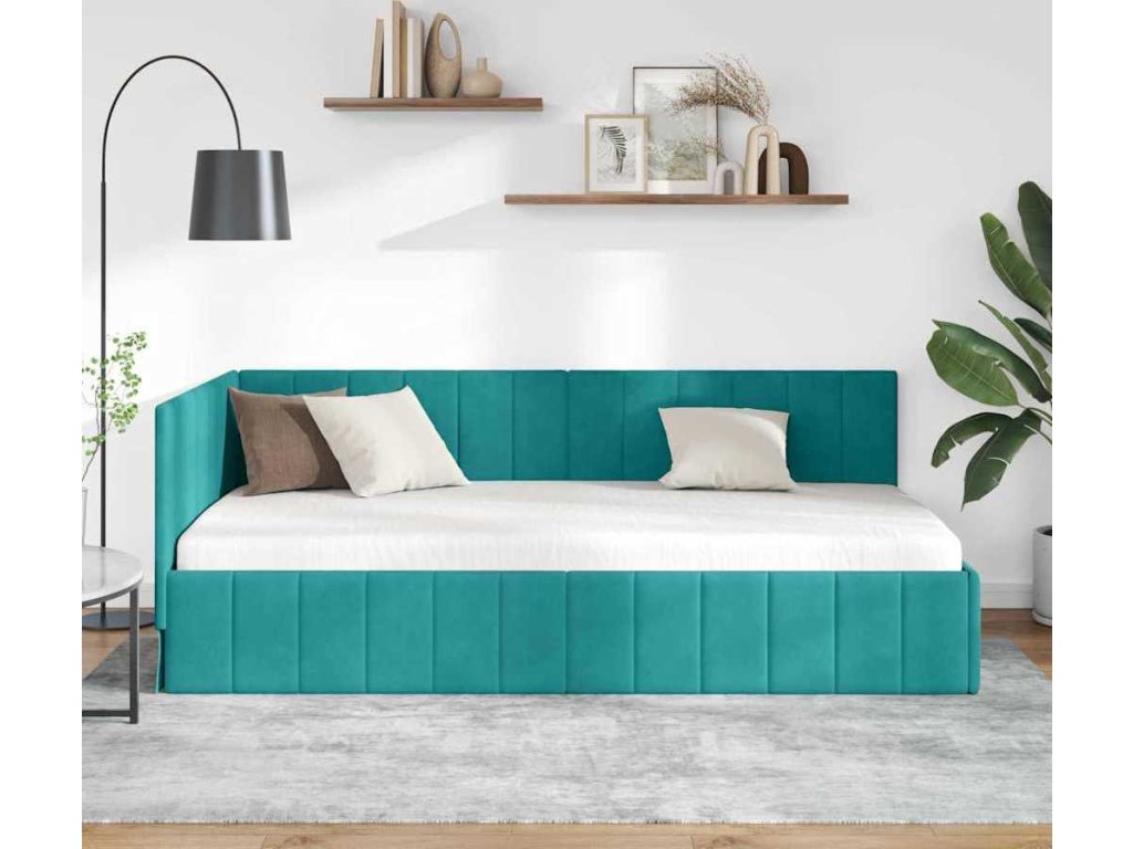 Rohový rám postele s čelo Tyrkysová 90 cm x 200 cm samet [42016315]