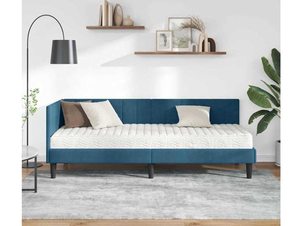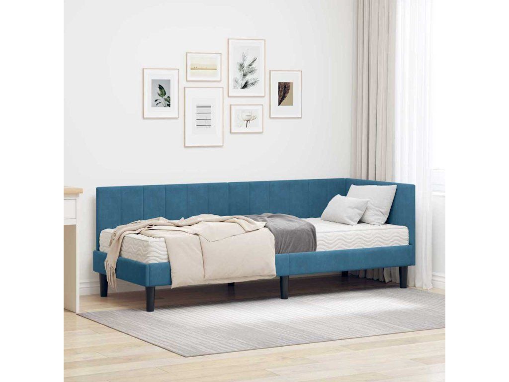 Rohový rám postele s matrací s čelo 2 pcs Modrá samet [3393877]