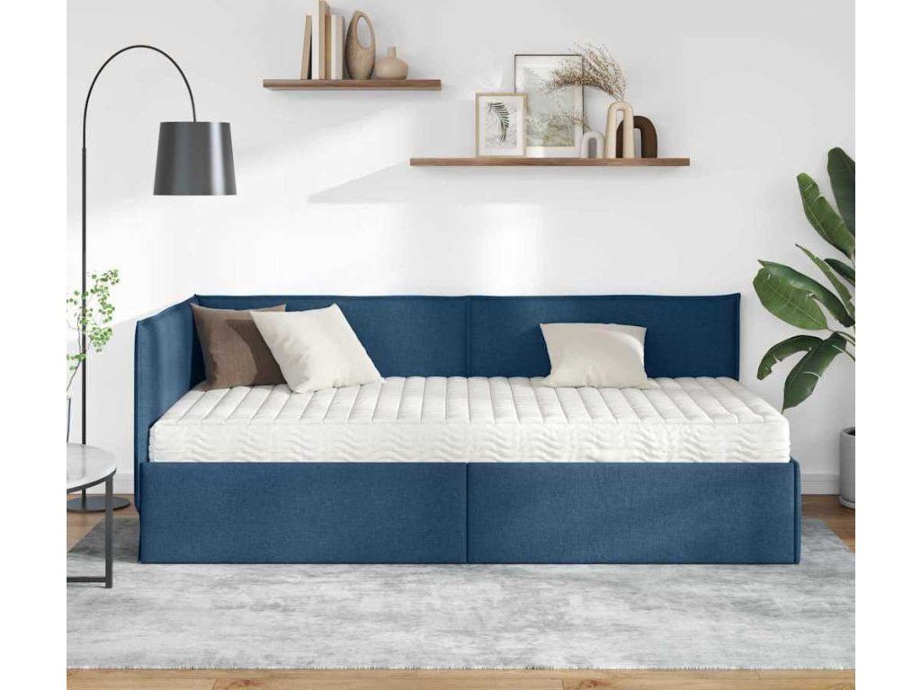 Rohový rám postele s matrací s čelo 2 pcs Modrá samet [3394004]