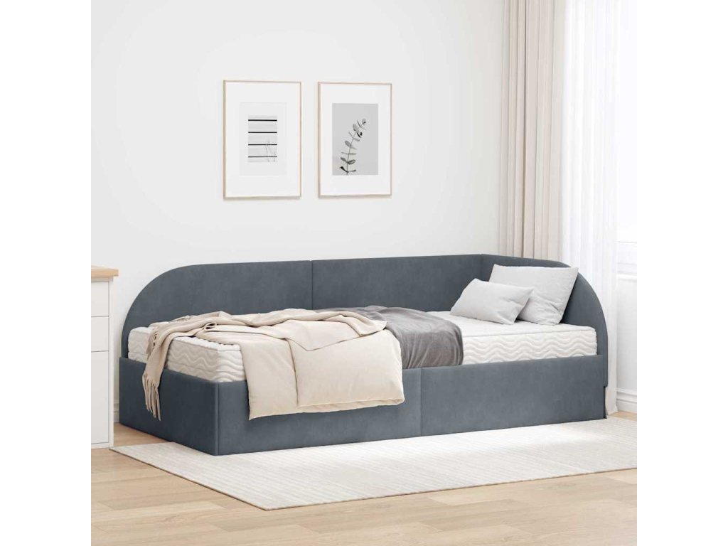 Rohový rám postele s matrací s čelo 2 pcs Šedá samet [3394195]