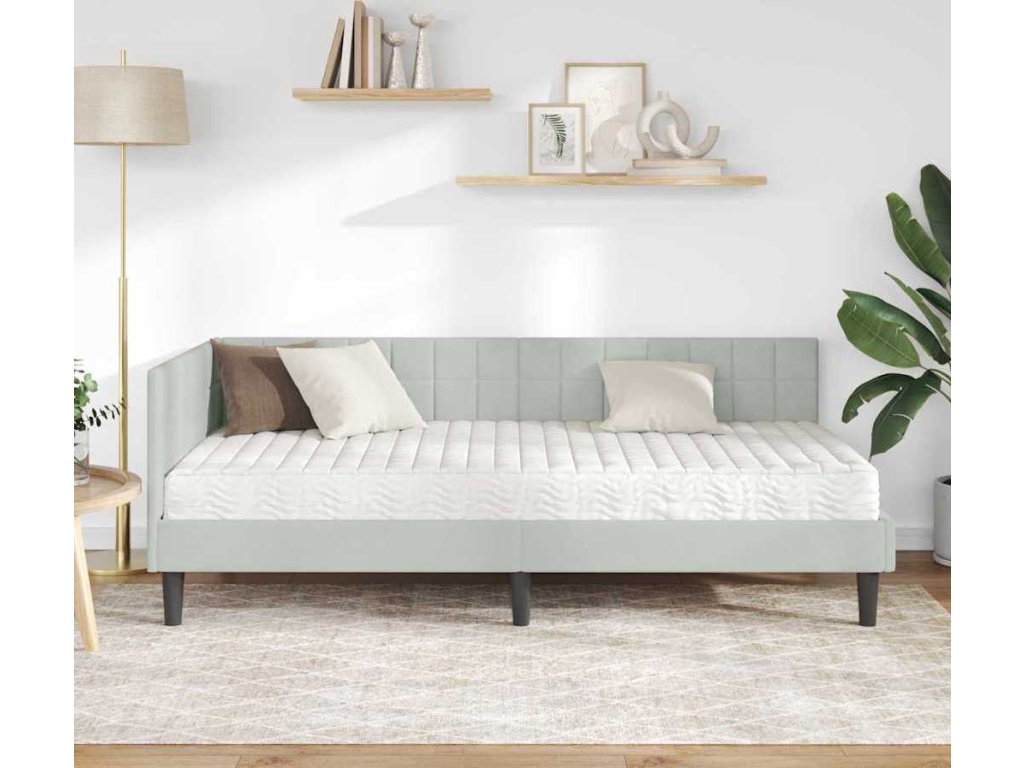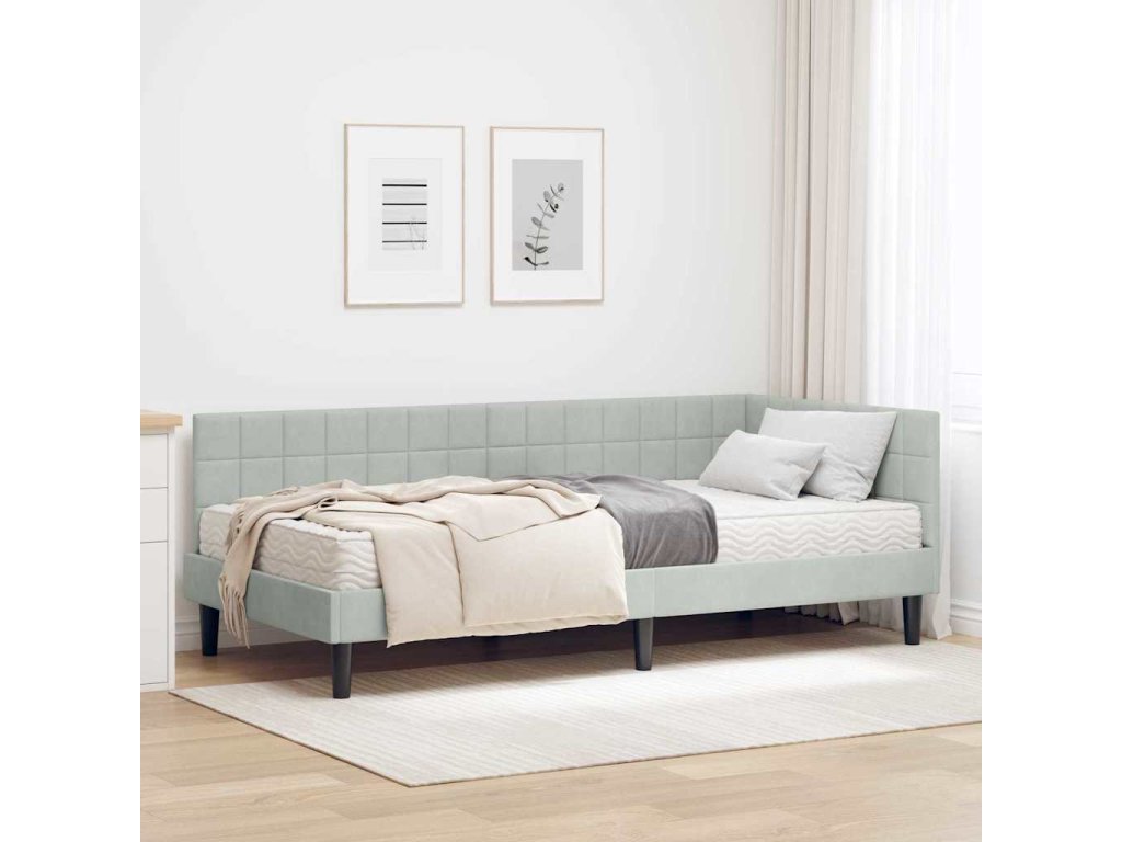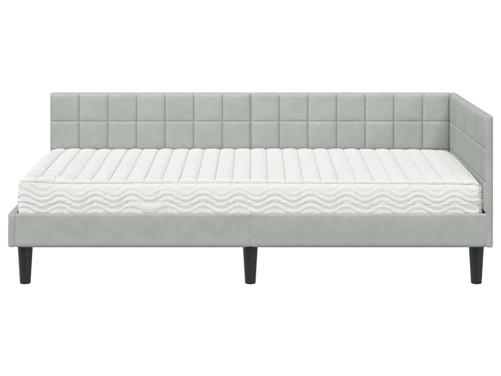 Rohový rám postele s matrací s čelo 2 pcs Světle šedá samet [3393978]