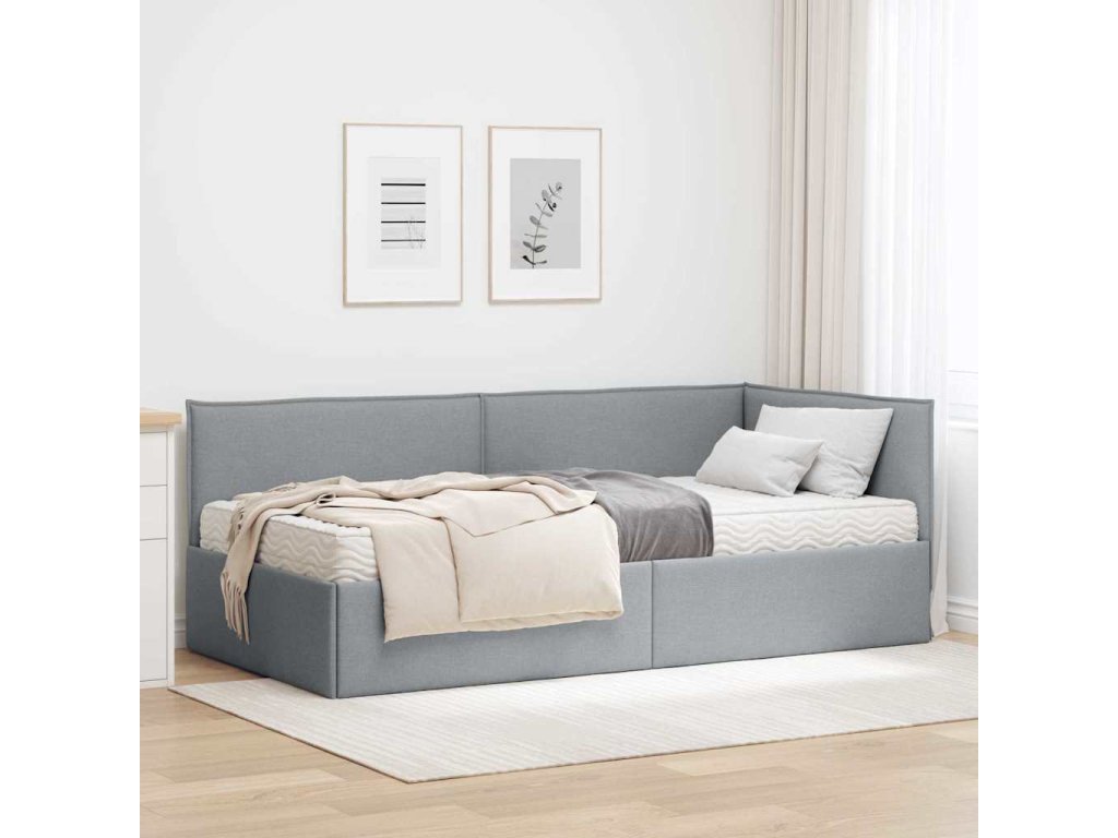 Rohový rám postele s matrací s čelo 2 pcs Světle šedá samet [3394013]