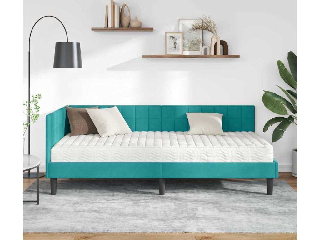 Rohový rám postele s matrací s čelo 2 pcs Tyrkysová samet [3393996]