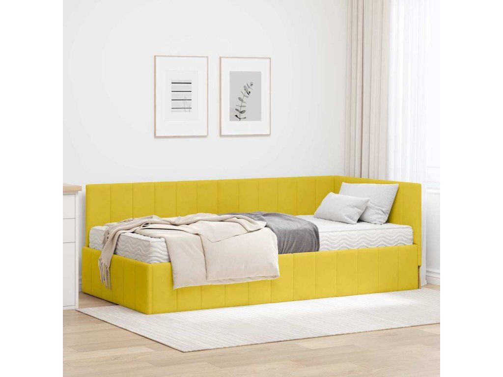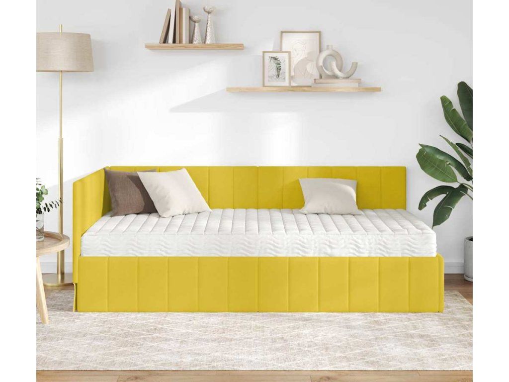 Rohový rám postele s matrací s čelo 2 pcs Žlutá samet [3393874]