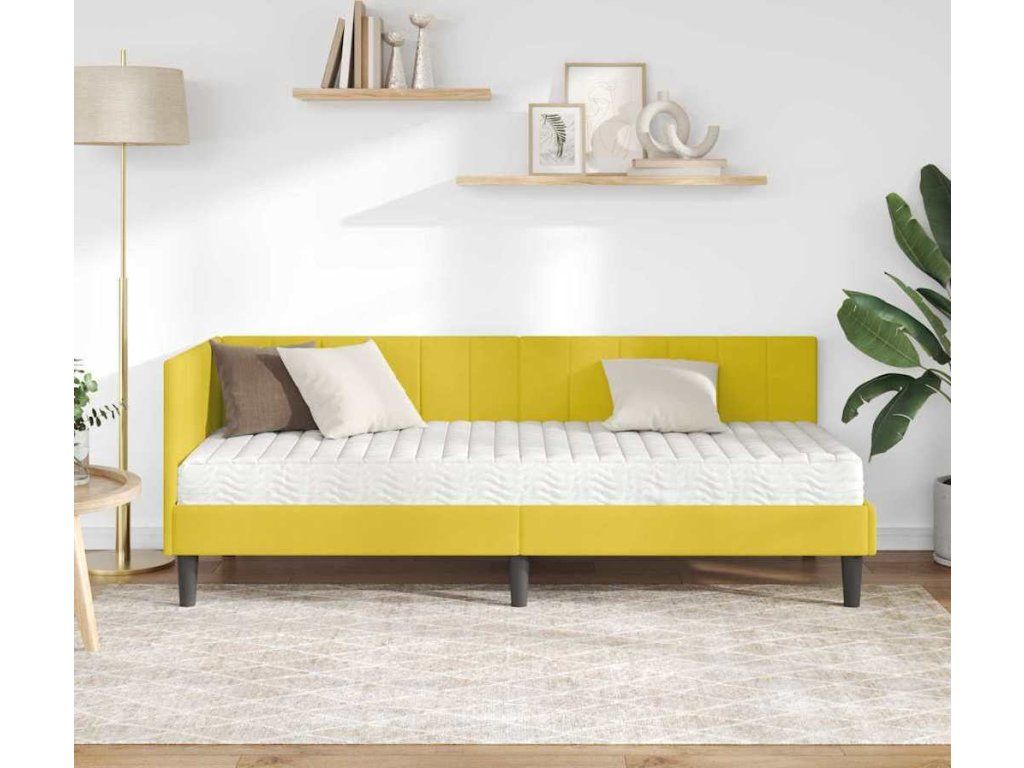 Rohový rám postele s matrací s čelo 2 pcs Žlutá samet [3393884]