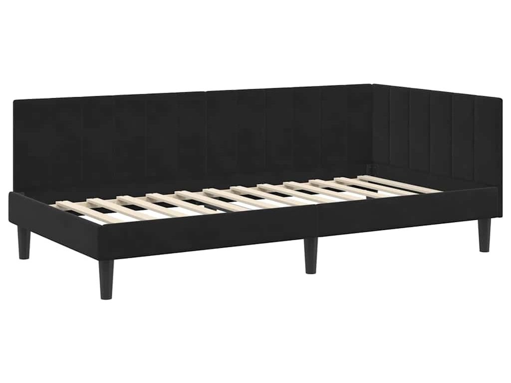 Rohový rám postele s matrací s matrací s čelo 2 pcs Černá samet [3393903]