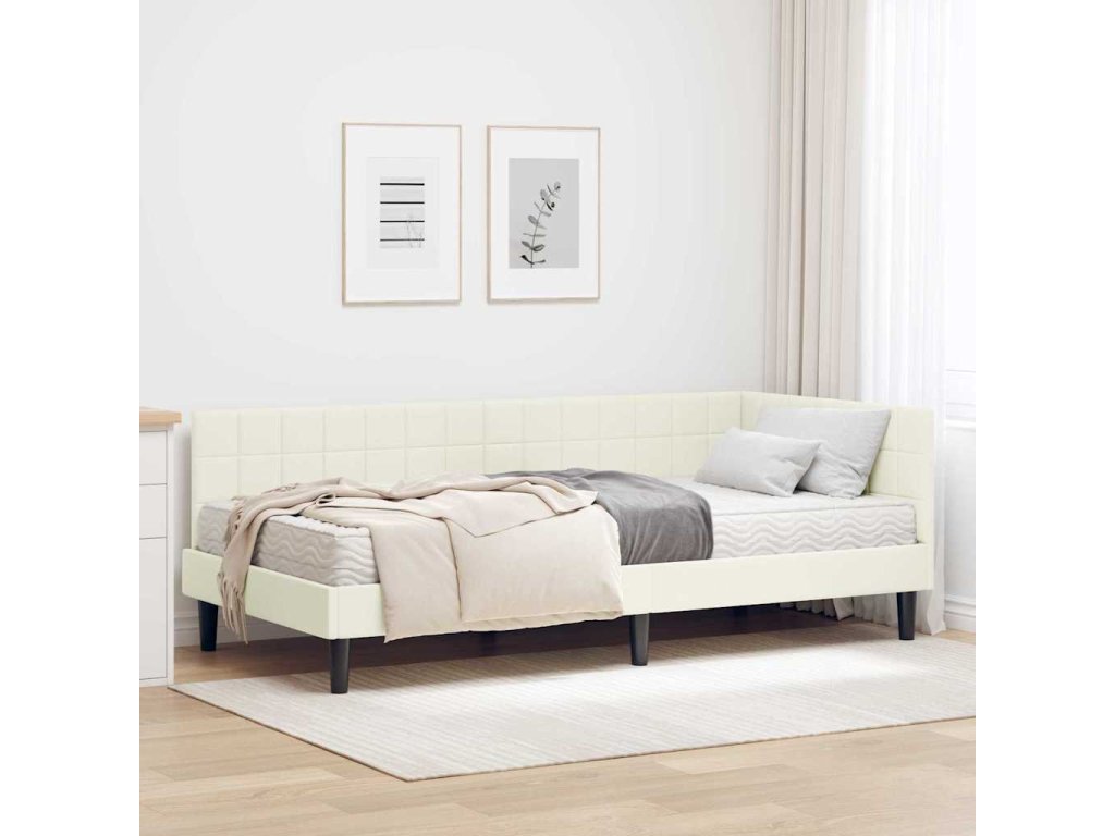 Rohový rám postele s matrací s čelo Krémová 90 x 190 cm samet [3393975]