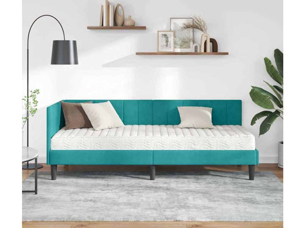 Rohový rám postele s matrací s matrací 2 pcs Tyrkysová samet [3393886]