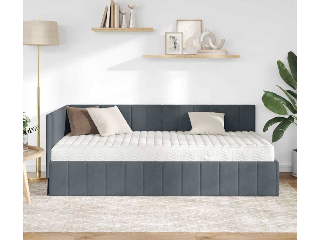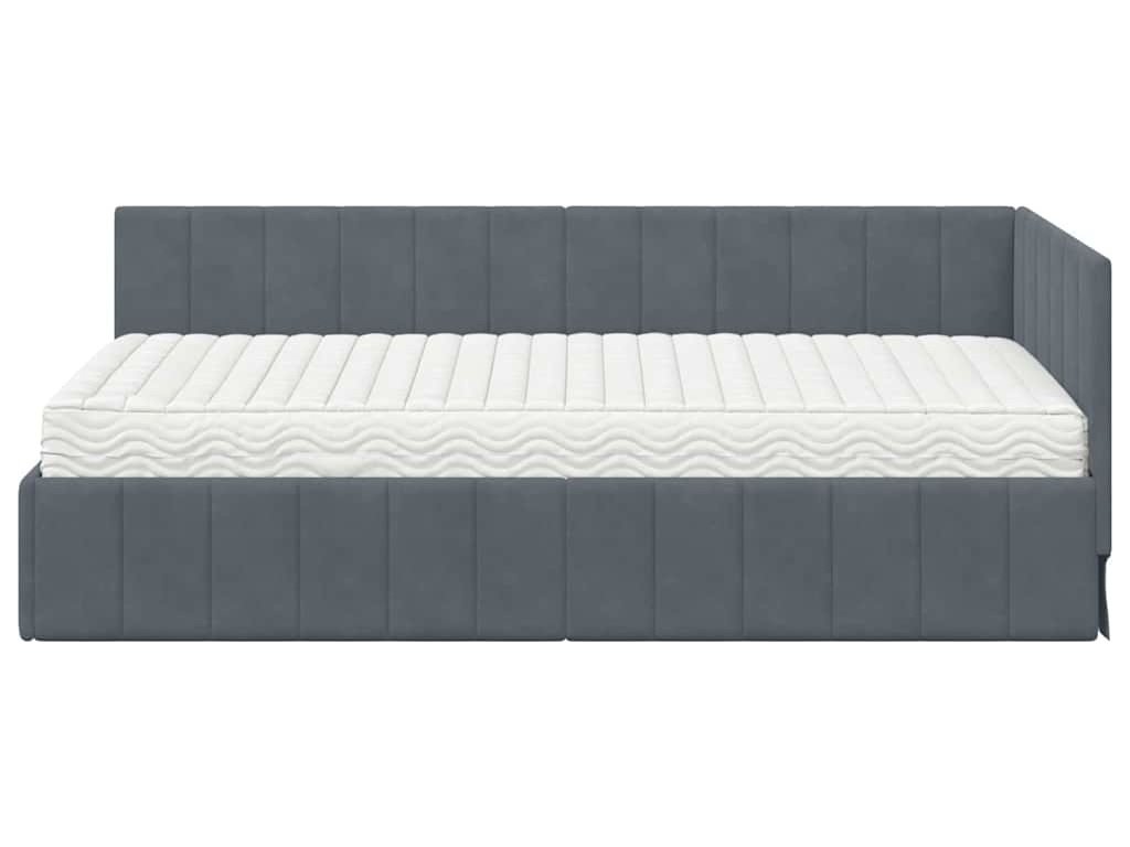 Rohový rám postele s matrací s matrací s čelo 2 pcs Šedá samet [3393869]