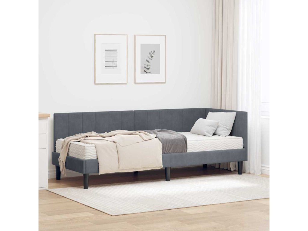 Tento rohový rám postele s matrací výborně spojuje moderní vzhled s každodenní funkčností. S jasným obdélníkovým tvarem je určen pro ty, co mají rádi jednoduchost a čisté linie. Hezký sametový povrch a elegantní design z něj dělají skvělý doplněk do každé ložnice, zatímco rám postele dodává útulný pocit. Perfektně se hodí k sezení i spaní, jeho umístění v rohu šetří prostor, což je ideální pro malé byty nebo minimalisticky zařízené pokoje.