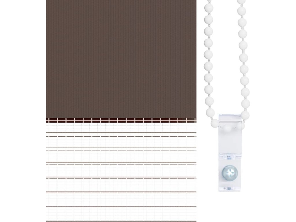 Žaluzie je vyrobena ze 100% polyesteru. Dodává se s bílým kuličkovým řetízkem, jehož instalace a používání jsou velmi snadné.